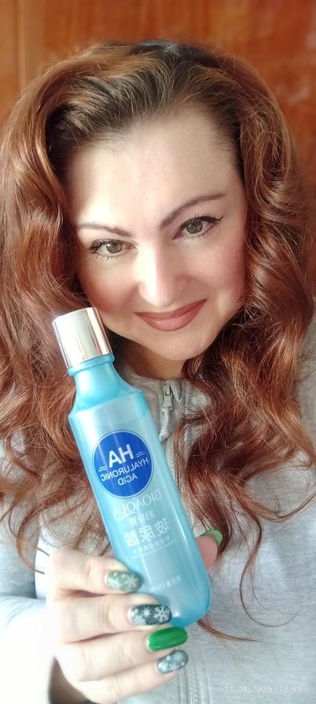 Всех приветствую 👋😉❤!!! Увлажняющий тонер для лица с гиалуроновой кислотой надолго удерживает влагу в глубоких слоях дермы, питает ее, предотвращает преждевременное старение кожи. Гиалуроновая кислота увлажняет кожу, удерживает влагу, подходит для кожи любого типа, а особенно полезна будет для сухой кожи. Гиалуроновая кислота способствует улучшению цвета и тона кожи. Тонер убирает шелушение, уменьшает мелкие возрастные и мимические морщины. Возвращает тонус увядшей коже. Способ применения: нанести на очищенную кожу лица при помощи ватного диска. После - можете наносить сыворотку или крем. Подходит для ежедневного использования. Мои личные ощущения: Прозрачная жидкость 💧 с лёгким ароматом , не липкая , быстро впитывается , хорошо увлажняет кожу ! У меня никаких аллергических реакций не вызывает. Объём 150 мл. 👍🔥 Досталась мне в подарок 🎁 от joom что в двойне приятно 🤩 Спасибо продавцу ❤Спасибо joom ❤️ К покупке могу рекомендовать 🛍️😍😘🥰🌹 Р. S.: Хочу поздравить всех моих подписчиков и шопоголиков joom с наступившим 2025 годом змеи 🐍🐍🐍 Желаю мира , здоровья, любви , удачи во всём!!! Всех обнимаю 🤗