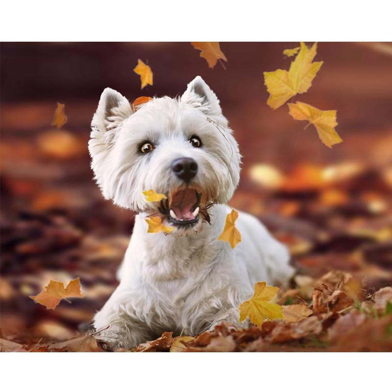 5D Diy Алмазная картина Вышивка крестом Вест-хайленд-уайт-терьер Полная круглая алмазная вышивка