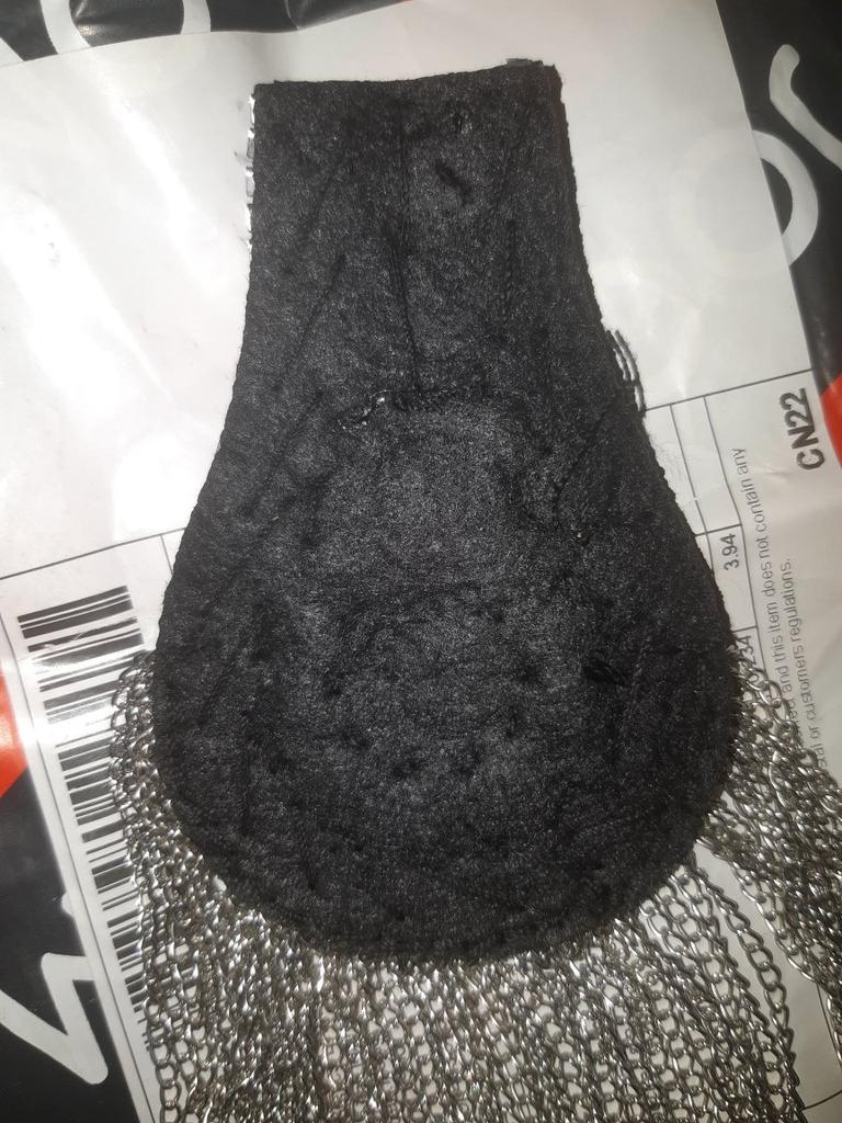 Посылка до С-Петербурга шла 26 дней. Погон пришел в целости, хорошо упакован. Пошит аккуратно, сзади две булавки, цепочки густые. Единственное, я не досмотрела, что они продаются по одной штуке, а не парой.