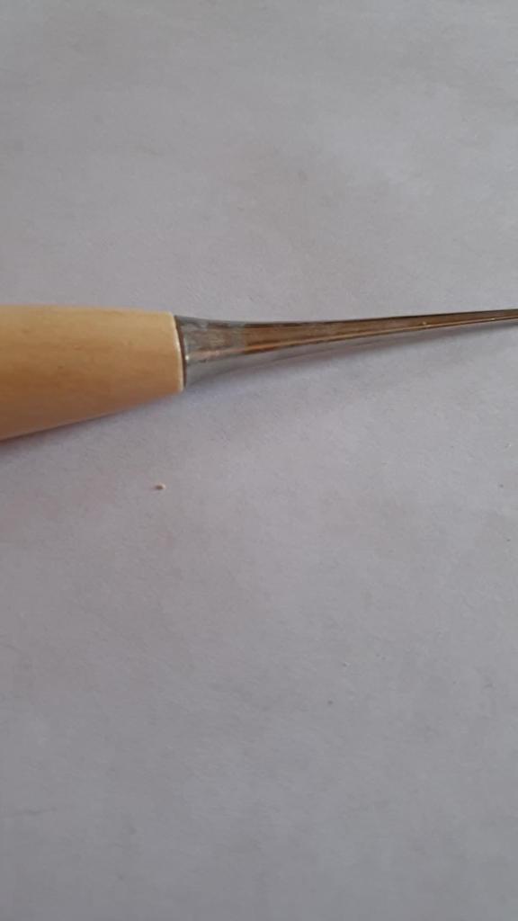 Кончик шила был шершавый с каким-то металлическим бугорком на боку у самого острия, пришлось сточить о точильный камень для ножей, теперь порядок.