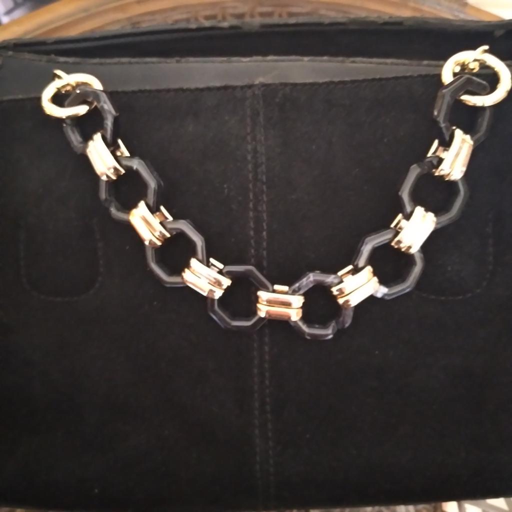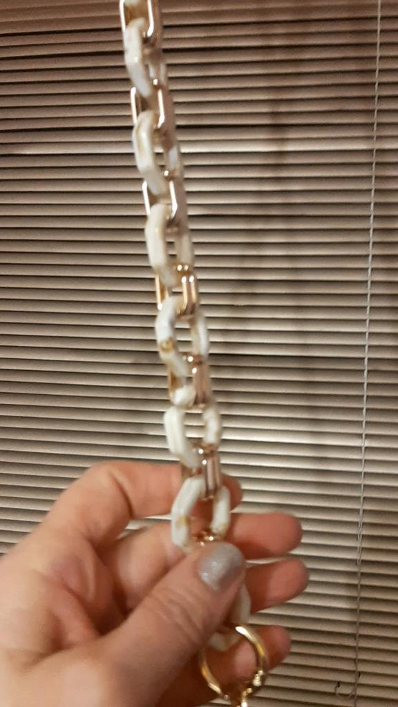 Ремешок для сумки. Звенья ремешка акриловые или из смолы, соединены пластиковыми пластинами. У продавца три расцветки черный, бежевый, прозрачный. Длина на выбор всё зависит от того какой длины нужен ремень. Эта моя любимая сумка и выбросить рука не поднимается. Заменила ручки. Убрала пять звеньев, т.к. общая длина 40см, для этой сумки большая. На концах ремешка удобные карабины. Всё быстро и легко. В комплекте дополнительные элементы для соединения звеньев. Отличный вариант для декора сумок! Рекомендую.