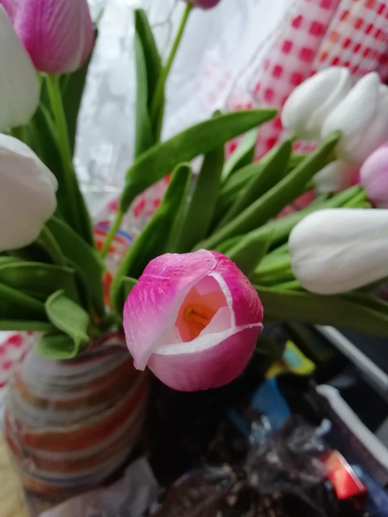 Получила заказ , начитавших положительных отзывов. Полное разочарование. Бутоны все очень мелкие, при склеивании очень сжатые (верхние листья бутонов "залазят" друг на друга, некоторые просто надорваны или несклеены, внутри бутона торчит обычная проволока, даже не прикрытая пластиковой тычинкой. Стебель - полая пластиковая трубочка, с тонкой и короткой проволокой внутри. Концы этой трубочки пустые почти на 1,5-2,0 см, пришлось подрезать, т.к. на этих трубочках цветок не стоял. На фото видно мои тюльпаны, купленные у другого продавца (розовые и бежевые). Разница не в пользу новых.. Очень обидно. Открыла спор по частичному возврату средств за поврежденные бутоны. В общем букете видно, что на фоне "старых" тюльпанов новые вообще не видны, хотя их в 2 раза больше по количеству...