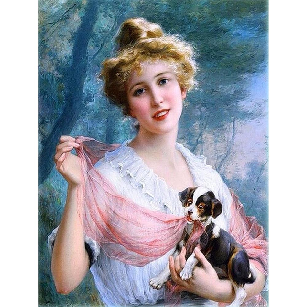 Алмазная картина, полная круглая красивая девушка, щенок, мозаика, сделай сам, алмазная картина, собака, вышивка крестом — купить товар онлайн с бесплатной доставкой по всему миру!