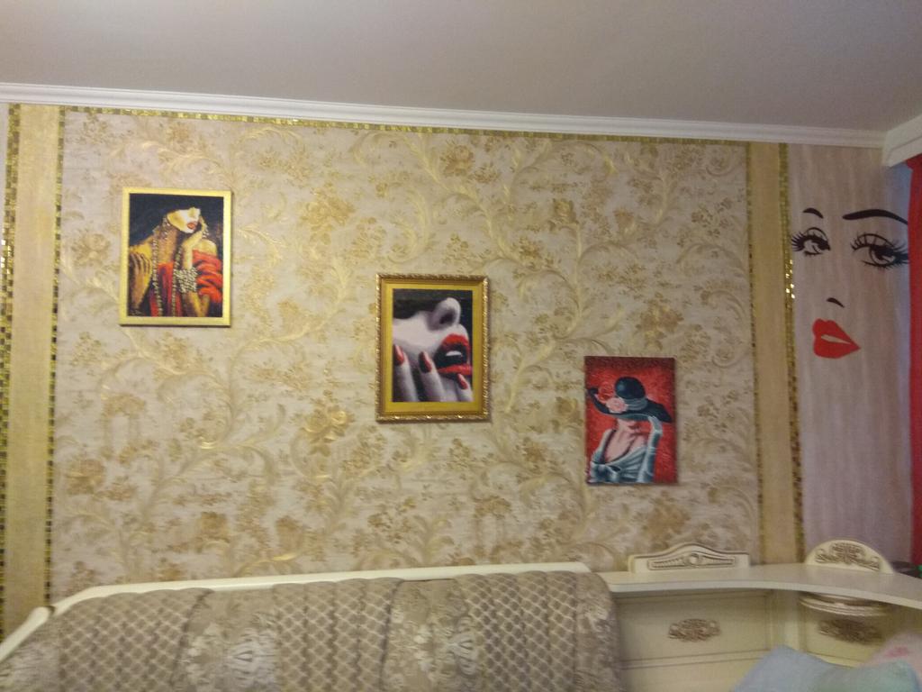 Видимо покупала все три картины в одном магазине, но это хоть не помята. Закрыта двумя полосками бумаги, что конечно же ( мне по крайней мере) неудобно. На такую картину не могли еще меньше положить такую штучку