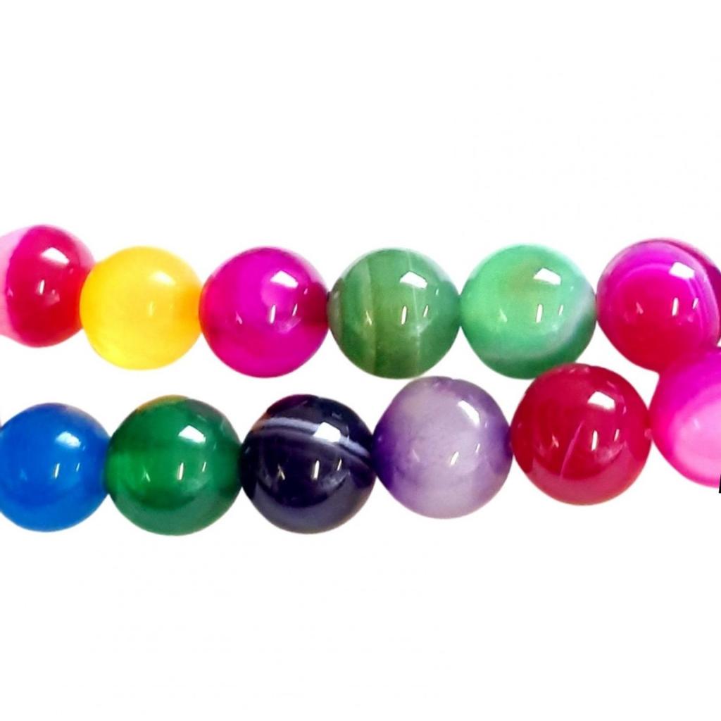Fil de 46 perles rondes semi précieuses 8mm 8 mm 0,8 cm en Agate multicolore (bleu, rouge, rose, verte, noire, violette,jaune, marron, noir, etc..) Modèle : fil de 46 perles rondes (à + ou - une perle)