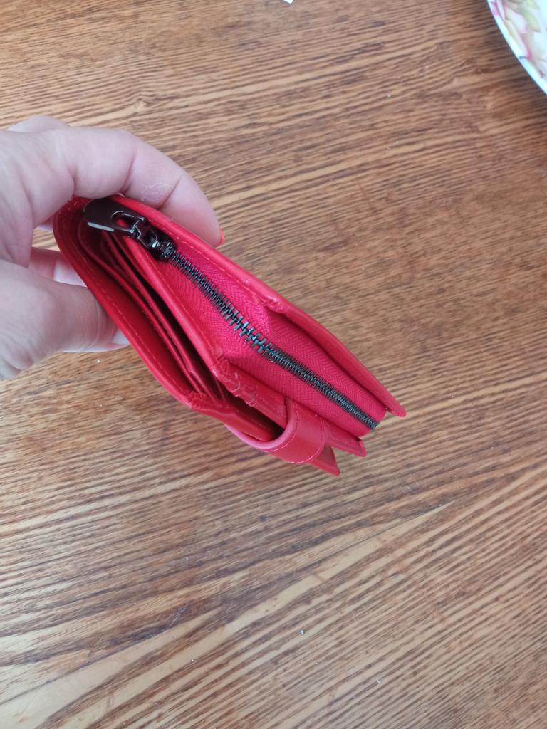 Ждала долго, почти два месяца. Когда выбирала кошелёк, просмотрела всё отзывы. Мне он очень понравился, а цвет на видио, в отзывах, был просто ну очень красивый. Заказала. Дождалась, получила. Цвет оказался не такой насыщенный, я заказывала красный, и сам кошелёк немного помятый. Очень сильный запах, надеюсь, что выветрится. Немного разочарована, в основном из-за цвета