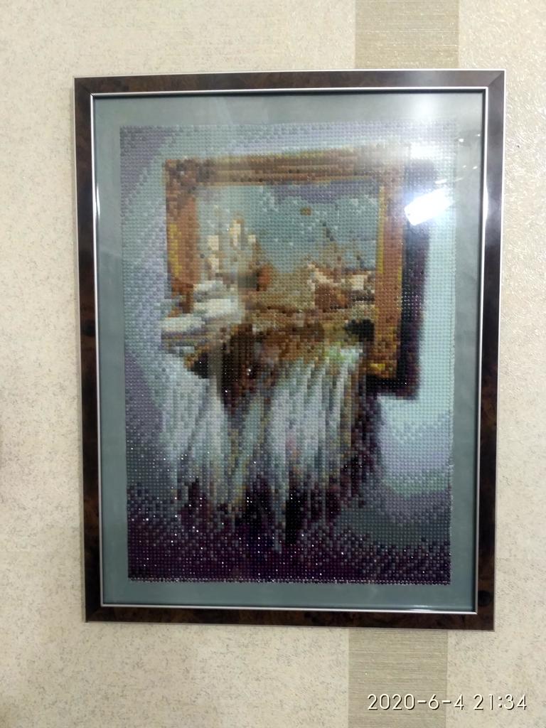 Картина пришла быстро. Немного помята, но это не критично, сделаю выкладку до полню. Спасибо. До полняю, заказывала30на40 по акции, а прислали25на35 сам рисунок, картинка маленькая, я разочарована. Это не акция а лохотрон.Добавляю края картины пришлось декорировать краской, что бы поместить в рамку 30на40, а на маленький не стандартный формат я рамку не нашла.