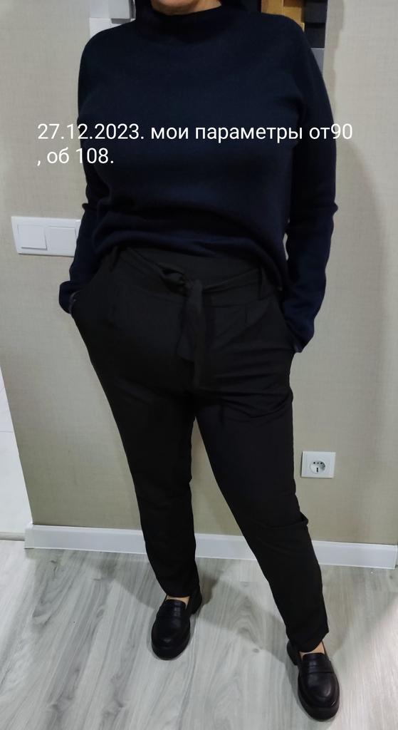 Брючки понравились. Интересный фасон. Спереди есть небольшие складки, поясок завязывающийся. Сзади на талии вшита резинка. Ткань не тянется, тонкая, но плотная, не просвечивает. На теплое время года подойдут.Замеры брюк: за счёт резинки талия растягивается до 97 см, в бедрах 108. Ещё один момент , если икры полные( у меня 38,5 см) , брючки будут впритык на икрах.