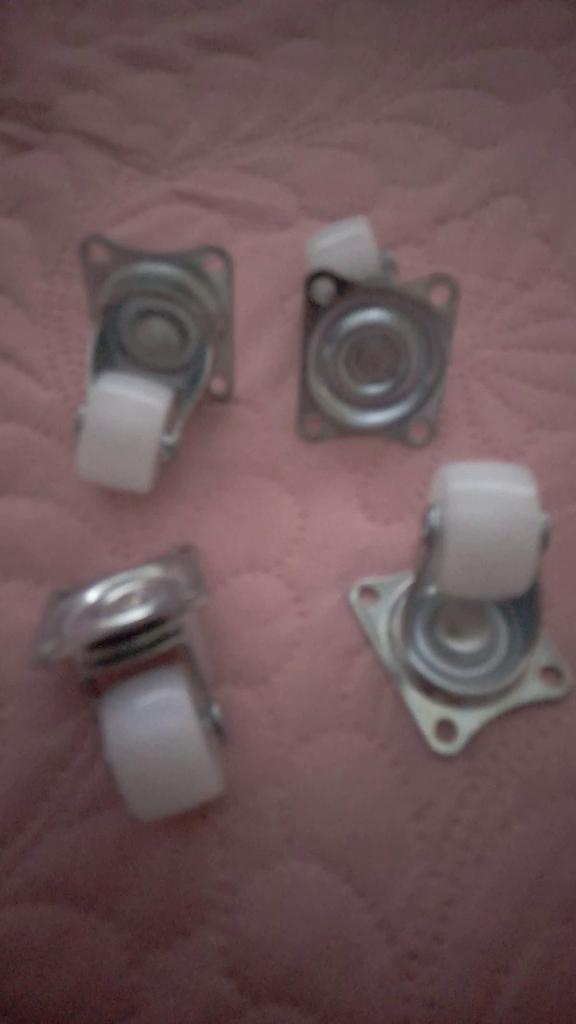Какие замечательные колесики. Сплав типа алюминиевый, само колесо белый пластик. Очень аккуратные. Брала для домашней тумбочки.