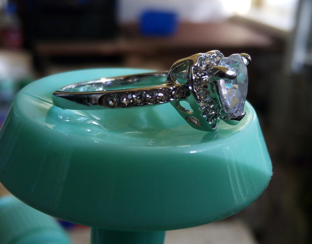 Великолепное колечко. Камешки переливаются на солнышке. От серебра не отличается. Сделано качественно и аккуратно. Доставка заняла 1 месяц. Рекомендую.