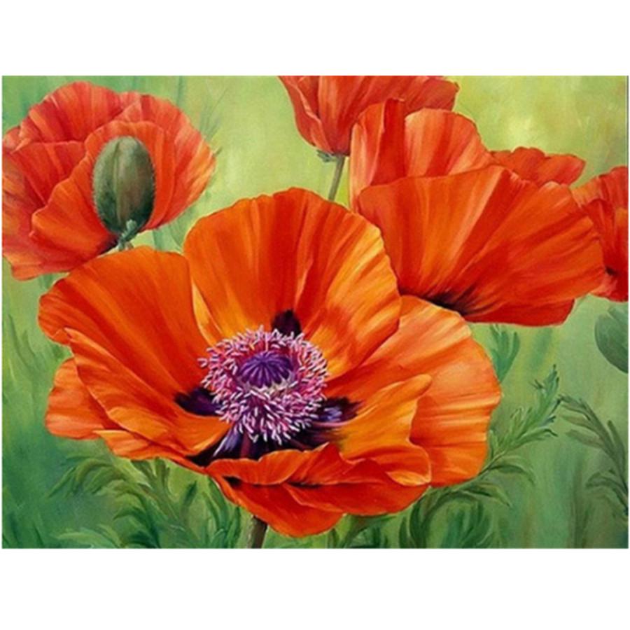 Полный 5D Diy Алмазная картина Цветущий красный цветок Вышивка крестиком Домашний декор Подарок ручной работы
