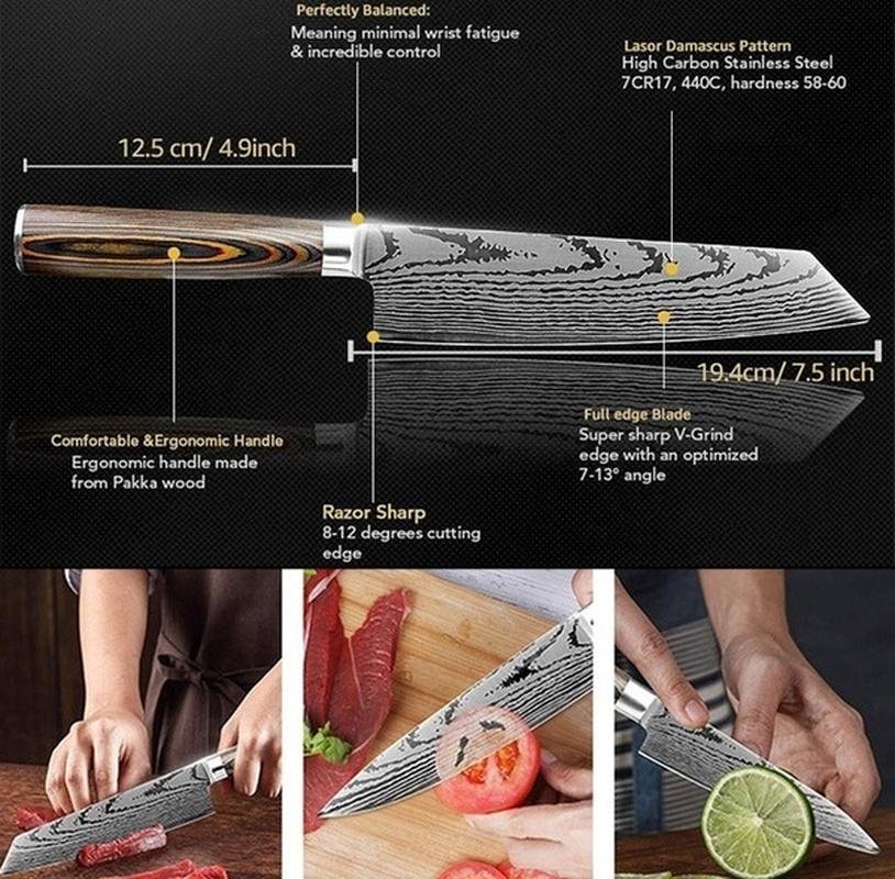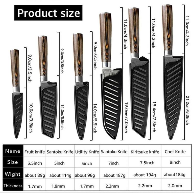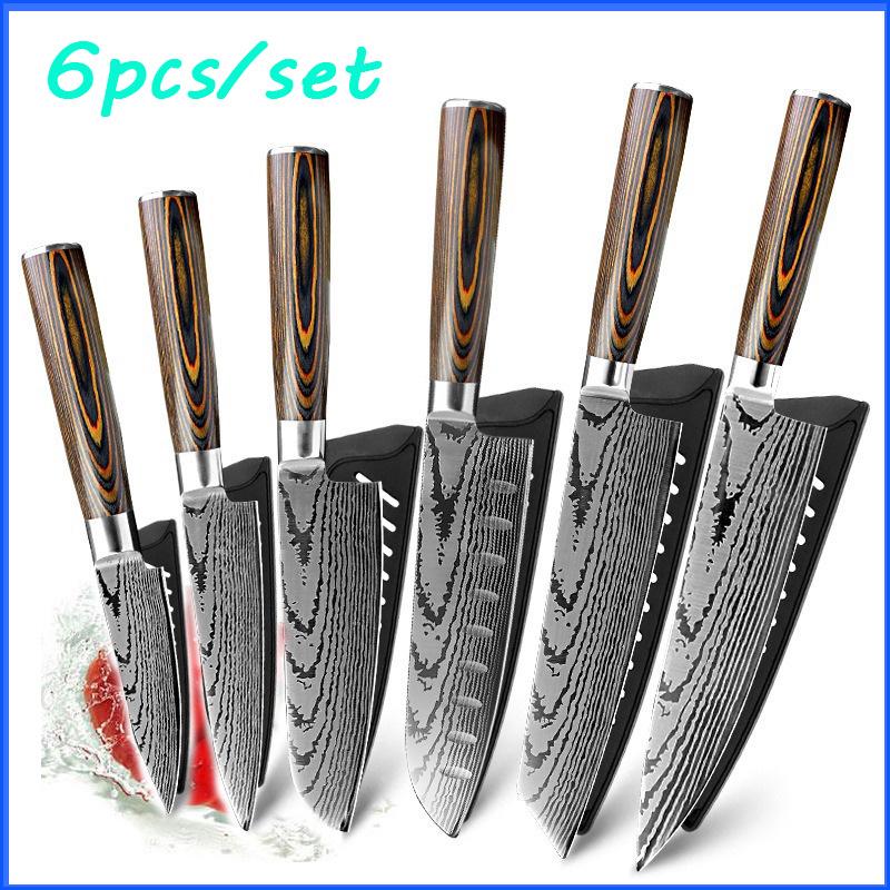 6 шт./компл. набор кухонных ножей из дамасской стали, кухонный нож, ножи шеф-повара, японский нож, нож из нержавеющей стали