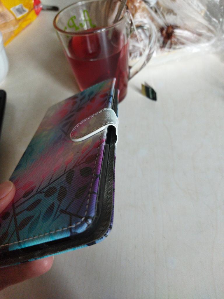 Симпатичный, это один плюс. Второй: крепкий магнит. Минусы: не аккуратно оформлены отверстия под палец и камеру; очень плотный материал, не закрывается до конца; у силиконового чехла по краям зазубрины и не прощупывается рельеф кнопок громкости; после одного дня использования надорвался хлястик с магнитом в двух местах. Так себе качество, хотелось бы лучше.
