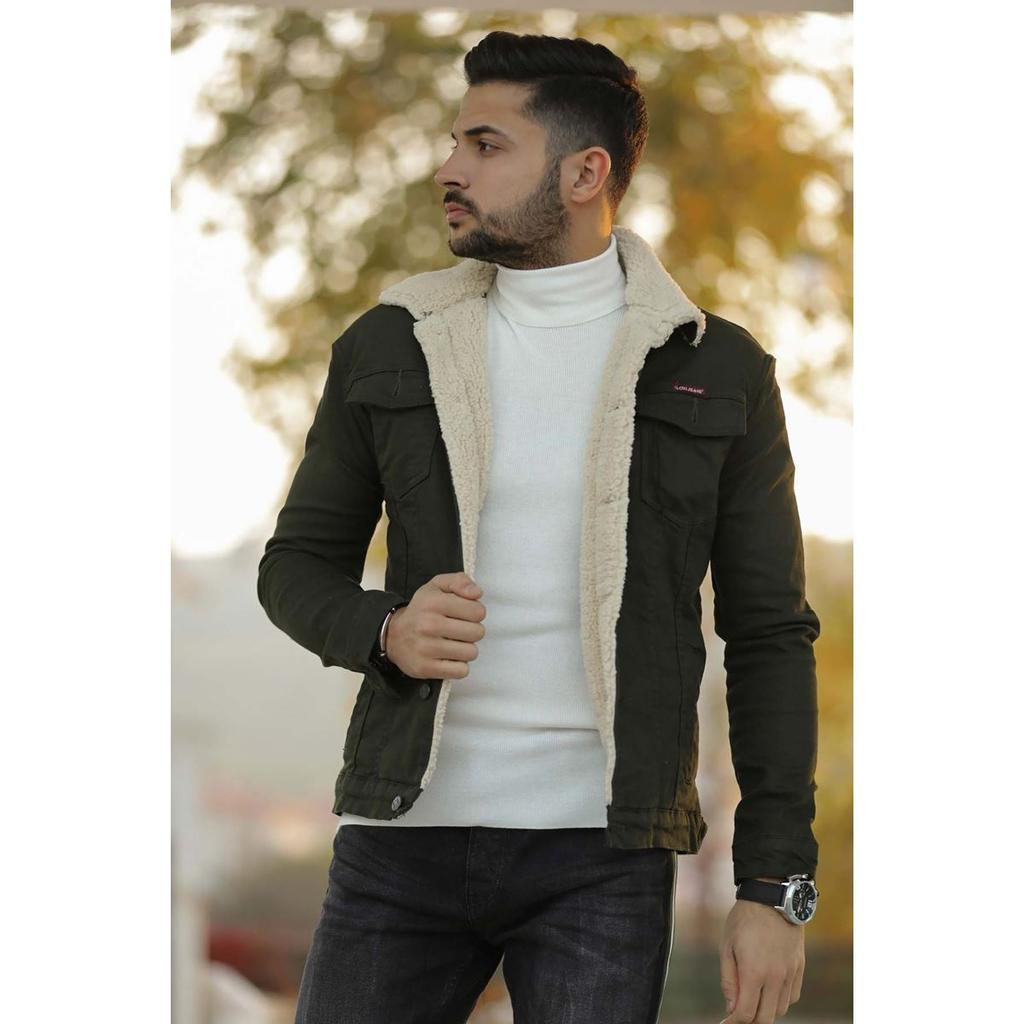 Мужская джинсовая куртка цвета хаки с мехом внутри — купить товар онлайн с бесплатной доставкой до всему миру!