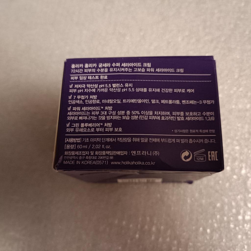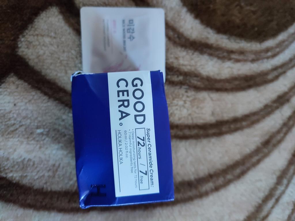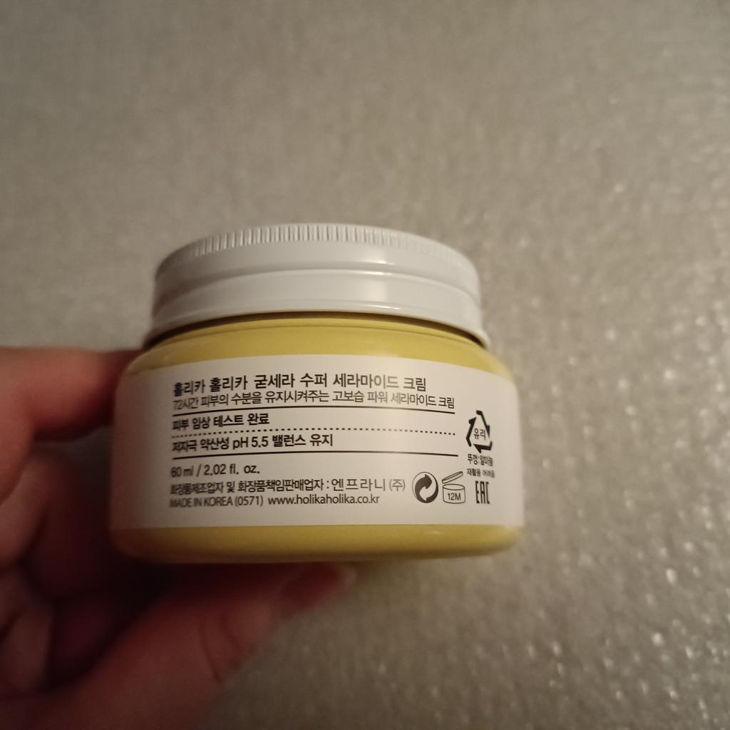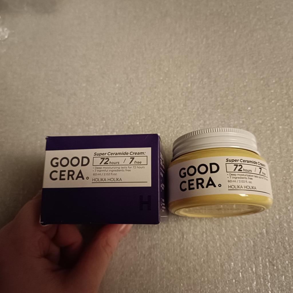 Упаковано хорошо. Баночка целая, ничего не вытекло. Запах лёгкий, почти не чувствуется. Крем ОЧЕНЬ плотный, но впитывается хорошо. Так же замечательно увлажняет. Мне помогал успокаивать покраснения из-за сухой кожи. На особо сухие зоны крема побольше наносила, достаточно быстро впитался и со временем пропадали припухшие покраснения. Так что я его использую сейчас в основном именно для этих целей. В общем крем очень понравился👍 Огромное спасибо продавцу 🤗 ----- Holica Glica Firsera Супер Керамидный крем Керамидный крем с высокой увлажняющей способностью, который сохраняет кожу увлажненной в течение 72 часов Клиническое тестирование кожи завершено Гипоаллергенный слабокислый рН для поддержания баланса 5,5 Поддерживайте слегка кислый рН 5,5 близкий к показателю рН кожи для ухода за здоровой кожей 7 Рецепт без добавок Искусственное сырье, искусственные ароматизаторы, минеральные масла, триэтаноламин, тальк, вазелин, без добавок бензофенон-3 Рецепт "Power Ceramide" Керамиды составляют более 50% трех основных компонентов кожи, защищая и увлажняя ее Увлажняющие ингредиенты, предотвращающие выход наружу (эффективный ферментационный керамид 1,3. 6 для чувствительной кожи) Рецепт "Зеленого барьера" Защита кожи от внешних вредных элементов • Вышеуказанные условия ограничены характеристиками сырья [Как использовать] На последнем этапе нанесения тонального крема возьмите умеренное количество и аккуратно нанесите на все лицо для впитывания. [Вместимость] 60 мл / 2,02 жидких унции. HOLIKA HOLIKA Good Cera Супер Керамидный крем Высоко увлажняющий мощный керамидный крем, который обеспечивает 72 часа значительного увлажнения для здоровой кожи Проверено дерматологом Слабая раздражающая слабокислота при рН 5,5 Здоровый уход за кожей благодаря слабой кислотности при рН 5,5, которая аналогична кислотности кожи. 7 вредных ингредиентов бесплатно Искусственные красители, синтетический ароматизатор, минеральное масло, триэтаноламин, Тальк,Вазелин, бензофенон-3 Мощный керамид" Керамид - это увлажняющий ингредиент, на долю которого приходится более половины трех основных компонентов. Он защищает кожу и предотвращает потерю влаги кожей. Зеленый полубарьер"" Это помогает защитить кожу от сухости или мелкой пыли СПОСОБ ПРИМЕНЕНИЯ Нанесите необходимое количество по текстуре кожи и мягко похлопайте, чтобы усилить впитывание. ВНИМАНИЕ Только для наружного применения. Храните в недоступном для детей месте. Не наносите на поврежденную или раздраженную кожу. Избегайте контакта с глазами ----- Посылка была сборная из нескольких заказов, что очень удобно. И в подарок положили несколько пробничков, за что отдельное спасибо, очень приятно🤗
