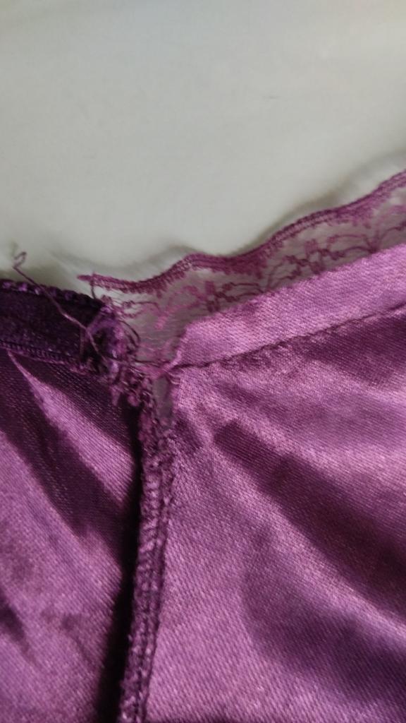 Товар просто отвратительный ! Нитки везде торчат ! Сшито как попало ! Всё в кривь и вкось ! Такое впечатление , что шили или пьяные , или ученики и из разных размерных заготовок ! Кружева колючие ! Перевод материала . И деньги на ветер !!!! Девочки не ведитесь за низкой ценой !!!! Носить точно не буду ! Продавца однозначно не рекомендую !!!!! Спасибо Joom(у) за своевременную доставку вместе с остальным товаром !