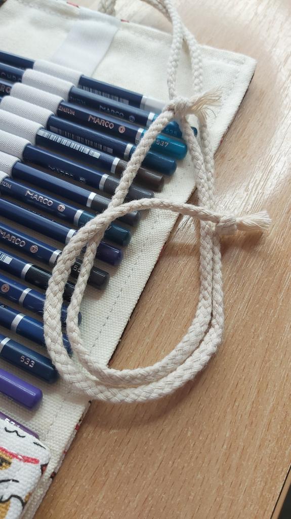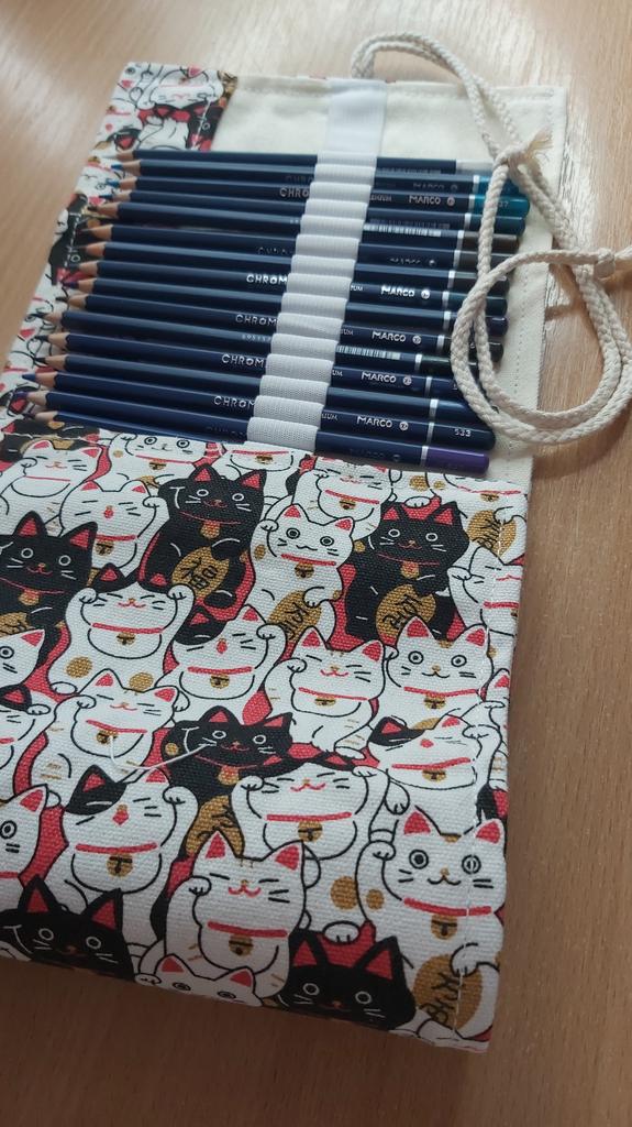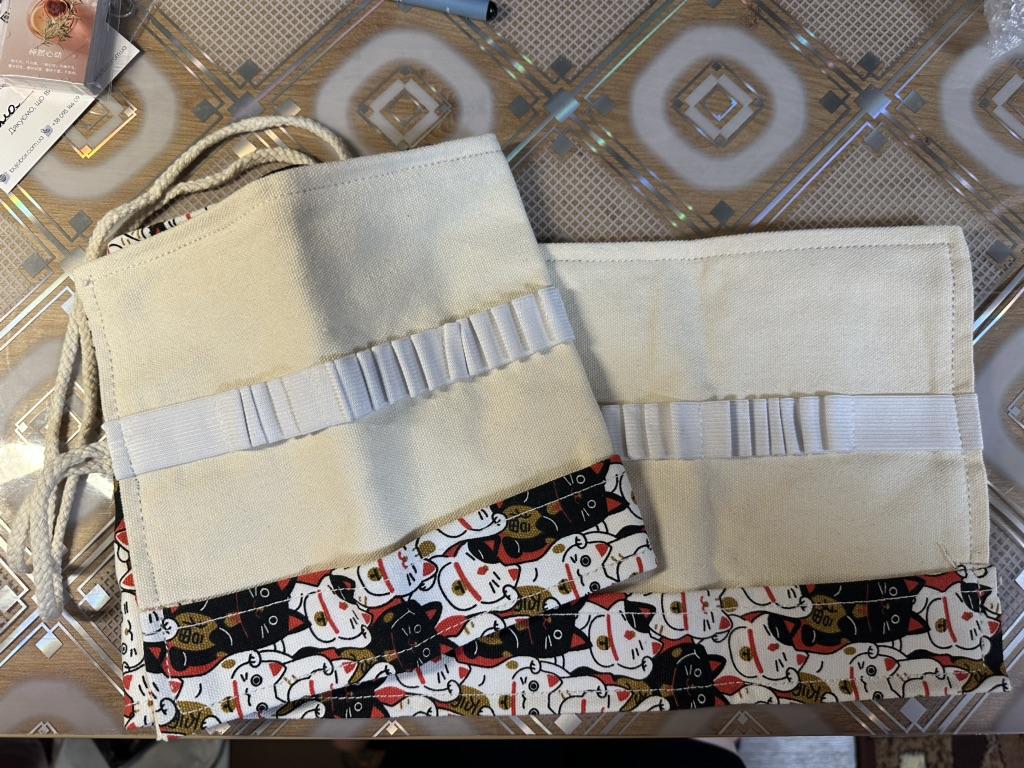 Всё отлично с пошивом Ткань халшеная ,приятненькая как для пенала Хотя сама завязочка хлипкая А так всё норм (хотя для толстых акриловых и обычных маркеров отсеков нет ..только для карандашей и линеров с ручками)