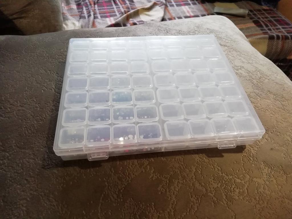 Ранее уже такой контейнер заказывала. Качественный пластик, без запахов. Удобные коробочки для хранения страз, всего 64шт. Вложены ярлычки для маркировки. Все супер. Рекомендую товар. Брала со скидкой.