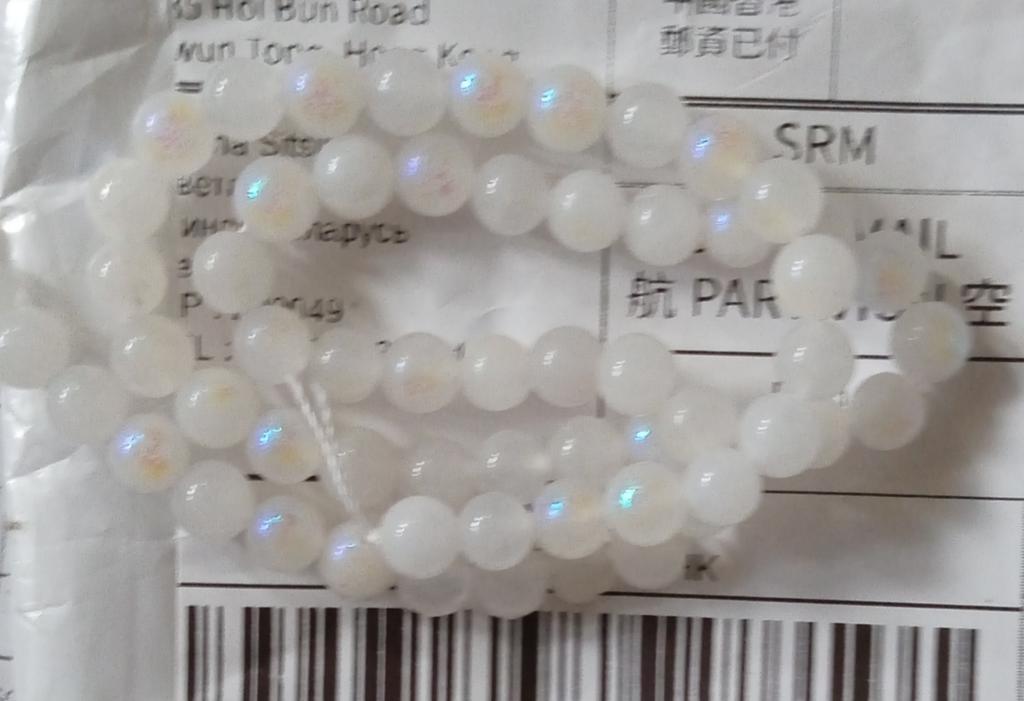 Размер бусин соответствует. Повертела бусины в руках на пальцах остались блёстки. В описании написано, что это натуральный лунный камень. Бусину разбила одним лёгким ударом, разлетелась вдребезги, подумала, что это стекло, но скол бусины оконное стекло поцарапал, значит это не стекло. Не знаю из чего эти бусины, возможно прессовка. Рекомендовать к покупке не могу. Судите по отзывам покупателей. Всем спасибо.