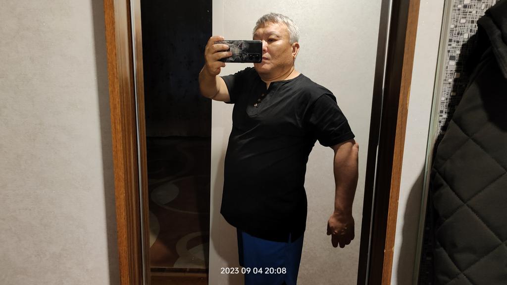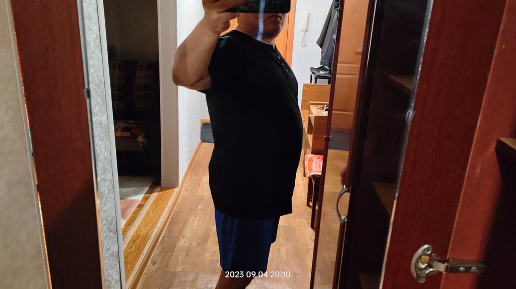 Мой параметры 175см; 85 кг, - 2хL великовата,надо было брать L, не люблю балахоны! Разрез с пуговками присмотреться ,косит чуть влево Придётся задарить свату,он покрупней