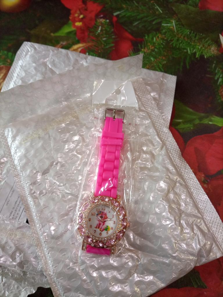 Получили часики через месяц и 18 дней.Заказывали ребенку на подарок на Новый год,но подарок не успел приехать к Новому году.Упакованы в двойную пупырку.Очень красивые,все целое,все стразики на месте.Детки разные,для нашего ребенка 9 лет часики немного большеваты и тяжеловаты.Часы приехали в рабочем состоянии.Ремешок мягенький,предусмотрены дырочки для застегивания ремешка.Но на наше худое запястье на последней дырочке все равно велико.Но велико не мало,ребенок рад.Спасибо.