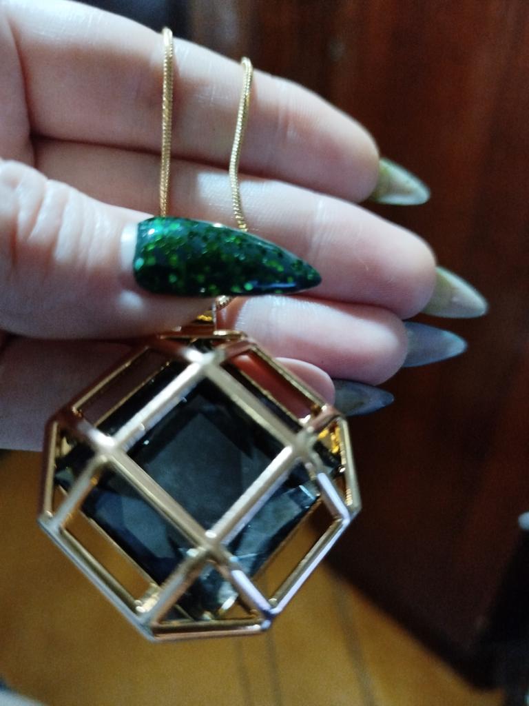 Подвеска на длинной цепочке. Я взяла в серебряном цвете. Вещь очень достойная, сделана добротно. Металл хорошо обработан. Камень переливается при разном освещении. Подвеска привлекает внимание, подходит к разным вещам. Рекомендую к покупке.
