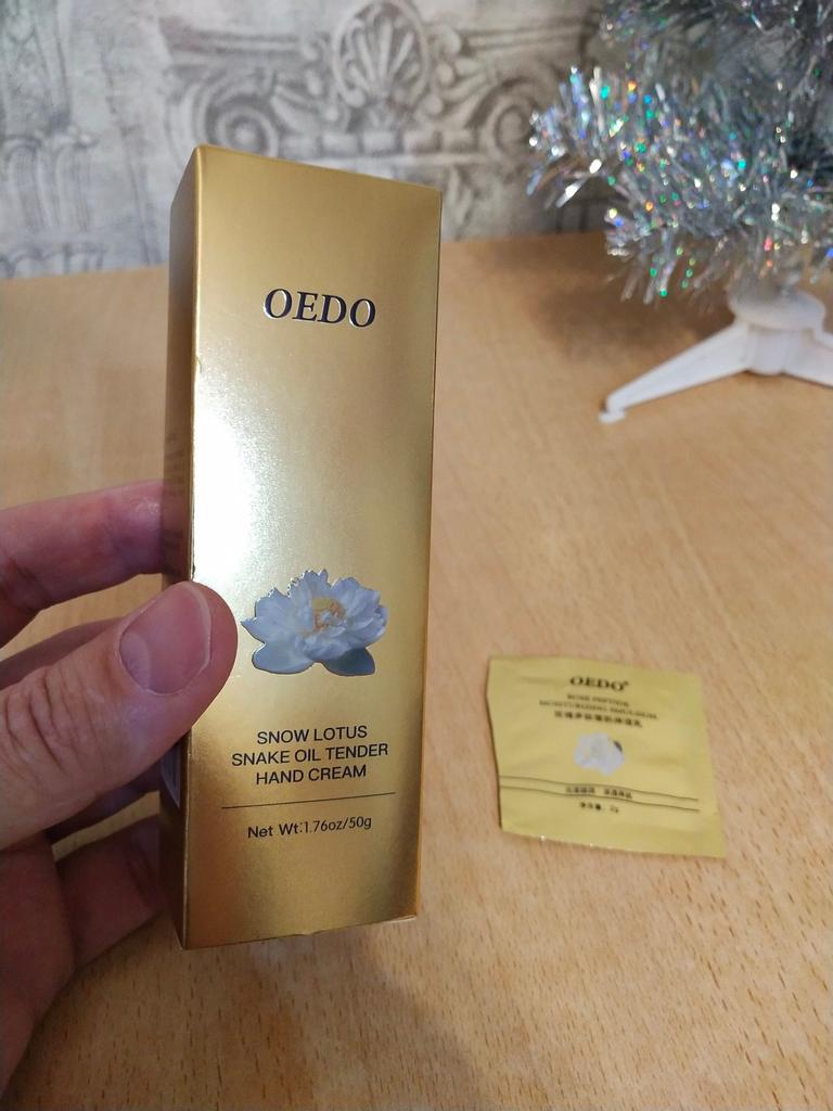 🤲 ЗАМЕЧАТЕЛЬНЫЙ КРЕМ ДЛЯ РУК OEDO 👍 🙋♂ Всем привет. Как известно, зимой кожа рук нуждается в особом уходе. Заказал жене вот такой крем для рук от известного производителя OEDO. Наша семья считает средства этого косметического бренда из Китая одними из лучших и наиболее эффективных. К тому же доставляют довольно быстро, без брака и помятостей. ✈️ Этот заказ долетел за месяц. Пришёл в красивой коробочке фирменного золотого цвета, которая была запаяна в слюду. На коробке есть вся необходимая информация, на английском языке, также есть срок годности, фирменная наклейка (гарантирующая подлинность продукта). Есть подробный состав, функции продукта, способ применения. В комплекте идёт инструкция, также на английском. Тюбик объёмом 50 грамм, откручивающаяся крышка, горлышко было запаяно. 🌺🐍 Состав богатый: вода, глицерин, змеиное масло (жир), оливковое масло, изопропилмиристат, вазелин, глицерилстеарат, диметикон, полисорбат 60, цетеариловый спирт, полиакриламид, экстракт цветков горькуши (семейство астровых), пантенол, аллантоин, мочевина, ксантановая камедь, метилпарабен, пропилпарабен, экстракт цветка лотоса, ацетил гексапептид-8. Как видим, много натуральных ингредиентов. 🤲 Крем белого цвета с цветочным ароматом, очень приятный запах. По консистенции крем жирноват, по текстуре однородной, густой. Я протестировал данный крем для рук. Наносится и впитывается очень хорошо. По ощущениям руки после применения увлажнённые, кожа мягкая и приятная на ощупь. После применения только приятные ощущения, крем понравился. Для холодного времени года крем подойдёт, жене он тоже понравился - будет пользоваться с удовольствием. 👍 Однозначно рекомендую. Кстати, в подарок к данному крему для рук продавец положил пробник с эмульсией для лица от этого же бренда Oedo - такой милый бонус. Приятных покупок на Joom. Для того, чтобы Ваша покупка стала ещё выгоднее, дарю Вам свой личный промокод на скидку 5% - 🤲 BEU0WY2XR1 🤲 Просто нажмите на него, и он автоматически скопируется. Всем добра))