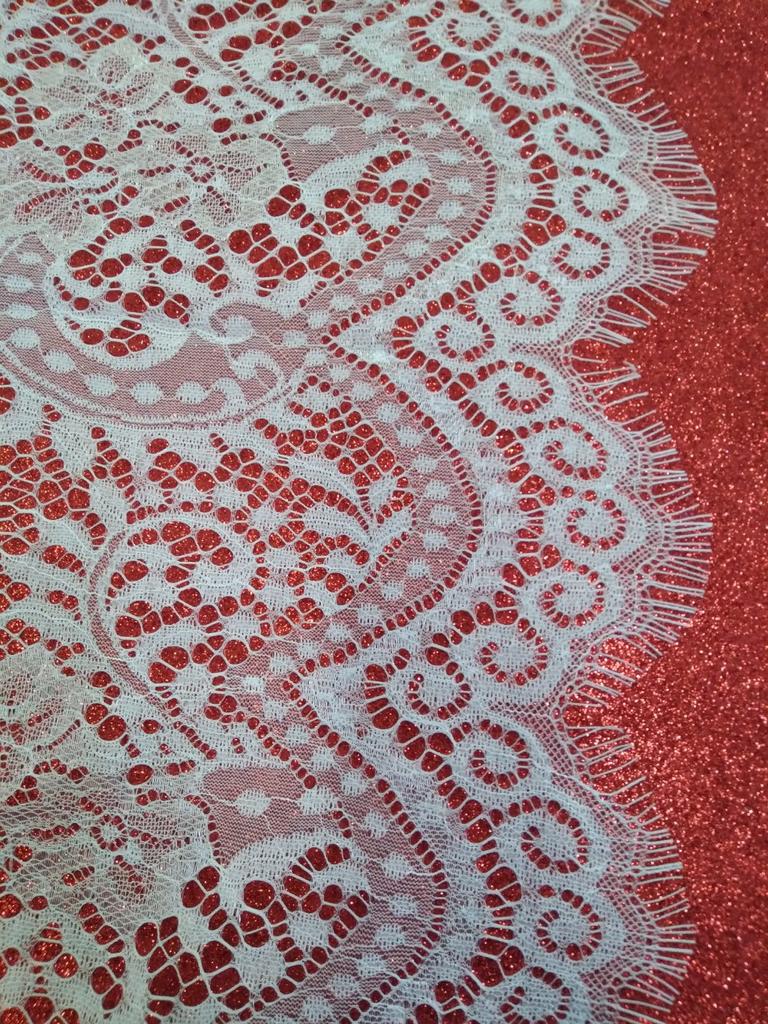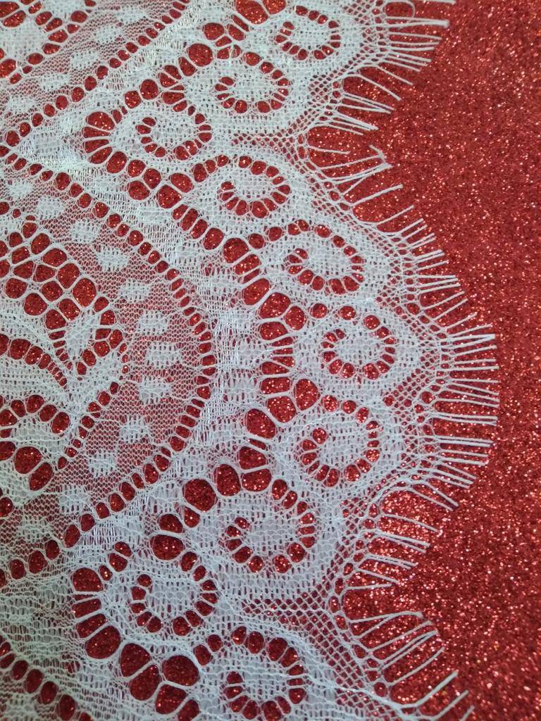 Доставка длилась месяц. В посылке пришло несколько заказов, все в сохранности. Кружево красивое, мягкое, как на фото, длина как заявлено продавцом 150х300 см. Края с короткой стороны имеют кромку, с длинной - кружевной край с ресничками, кружево матовое, некоторые узоры с отблеском, фото не передает. Кружево немного тянется. Продавца рекомендую, Джуму спасибо за доставку.