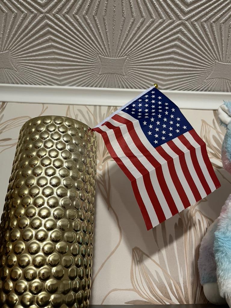 Флаг своих денег стоит, не более. Пластиковая палочка не поломалась, сам флаг помятый , нужно прогладить через тряпочку. Почему то думал будет на подставке. Шёл долго, месяца 2 примерно.