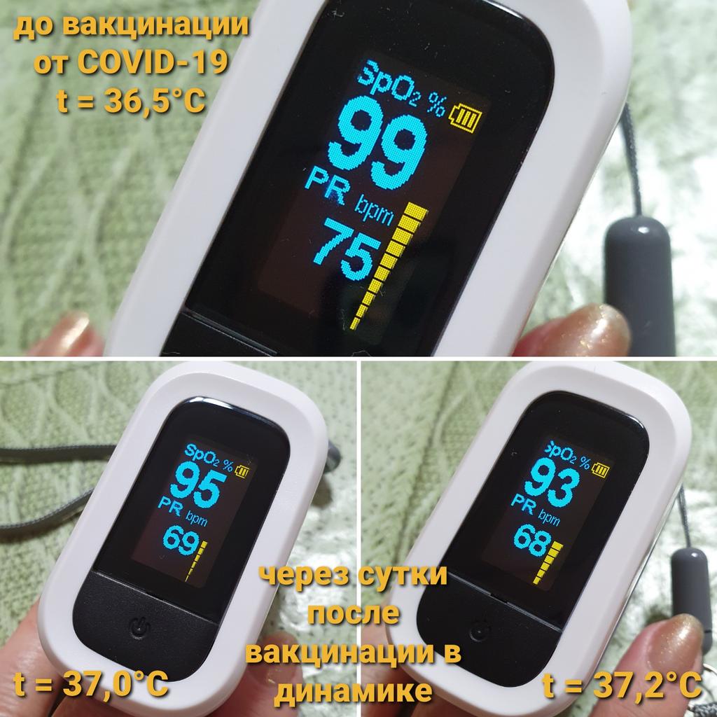 Пальцевый пульсоксиметр Хотя пульсоксиметры уже давно используются в пульмонологии, анестезиологии, спортивной медицине, интерес к ним вырос в марте этого года почти в 8 раз, если опираться на количество запросов в поиске Яндекса. Несмотря на то, что ВОЗ и Минздрав не выпускали каких-либо рекомендаций, касающихся использования прибора, это связано с эпидемией коронавируса. Пульсоксиметр напрямую с лечением вируса никак не связан, но теоретически, прибор может помочь его выявить. Пульсоксиметр — медицинский прибор, который показывает среднее количество кислорода, связанное с каждой молекулой гемоглобина, а также частоту пульса. По словам главного кардиолога Министерства здравоохранения РФ Юрия Беленкова: «Одышка и снижение концентрации кислорода в крови являются одними из первых признаков коронавирусной инфекции, а пульсоксиметр концентрацию кислорода может измерить». Прибор прост в использовании и быстро показывает достаточно точные результаты (норма - 95-99%). Определенного показателя насыщенности крови в случае заболевания коронавирусом нет, пульсоксиметр просто покажет пониженные значения (ниже 92%). Однако пониженные значения — ещё не повод для того, чтобы считать себя заболевшим коронавирусом. Точно поставить диагноз может только специальный тест на COVID-19. Кому желательно иметь такой прибор дома? Однозначно - спортсменам, людям с хроническими заболеваниями легких и сердечной недостаточностью. Я приобрела прибор для своих пожилых родителей. И думаю, что он должен быть в каждой аптечке, с ним наше самочувствие будет под контролем. Данная модель мне понравилась. Прибор находится в специальном кейсе, есть шнурок, чтобы повесить его, и подробная инструкция на английском языке. Прибор имеет серийный номер. Для его работы нужны две батарейки типа ААА (в комплект не входят). Прибор оснащен одной кнопкой включения. Измерение показателей происходит в течение 10 секунд после помещения пальца на инфракрасный датчик. Если прибор не снимать с пальца, он будет продолжать показывать измерения в динамике. Как только вы удалите палец с датчика, через 3 секунды он выключится. После включения прибора той же кнопкой можно повернуть изображение экрана так, как вам будет удобнее - горизонтально или вертикально. Удерживая кнопку в течение 2-3 секунд, индикация переходит в режим настроек. Здесь можно включить/выключить звуковое оповещение при снижении показателя насыщения кислорода ниже нормы и установить временной интервал выключения дисплея. Дополняю: я участвую в третьем пострегистрационном этапе клинического исследования вакцины против COVID-19. Вчера я получила вторую прививку. Мой организм на введение вакцины реагирует небольшим изменением температуры. После первой дозы я не могла проконтролировать изменение уровня кислорода, а сегодня через сутки после вакцинации стало любопытно. Результат на последнем фото - понятно без комментариев. Цена на момент покупки 943₽. Доставка со склада в Москве курьером за 3 суток после заказа.