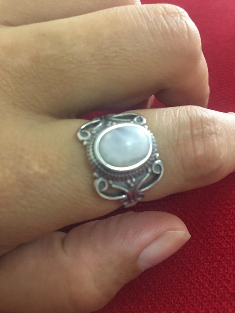 Заказывала из-за камня. Вместо лунного камня в кольце какой-то белый с вкраплениями. Должен был подойти к серьгам и подвеске, чтобы комплект получился. А в итоге просто кольцо. Я расстроена.