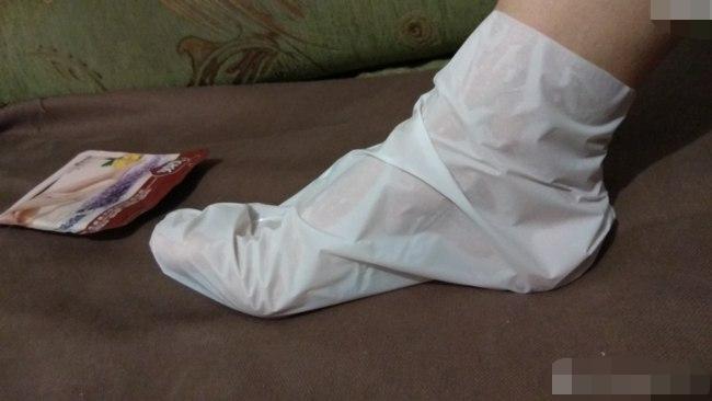 Моё внимание зацепила отшелушивающая маска для ног и всё, с моими запущенными ногами срочно, нужно это чудо. Шла посылка ровно месяц. Пришло в обычном бумажном пакете. Надписи на китайском и английском, но по картинкам и так все понятно. Носочки в упаковке спаены друг с другом, нужно разрезать, я сглупила и взяла первые попавшиеся на кухне ножницы из набора, потом долго их отмывала от химического запаха. Запах не сильный, но очень химический, напомнил жидкость для чистки унитазов. Есть специальный язычок со скотчем, для того чтобы закрепить на ноге. Внутри ткань, напоминающая медицинскую маску, пропитанная немного слизкой жидкостью.На мой 35 немного велико. Продержала 35 минут, потом очень хорошо смыла. Крем наносить не рекомендуют, т.к. эффект будет хуже. На второй день кожа стала как поверхность лакированного стола, казалось что нога в очень тугом носке. На третий день начала активно облезать кожа между пальцев. На четвертый день начала лопаться кожа на верхней части ноги. На пятый день продолжался эффект, т.к. эту кожу нельзя сдирать и тем более не рекомендуется тереть пемзой, лучше что бы сама отпала. Так же обнаружила в носках много хлопьев кожи. Пятки у меня очень страшные и запущенные, так что я их не стала фотографировать, но эффект реально есть, края у трещин скруглились, огрубевшая кожа сошла, эффект лучше чем от пемзы и металлической тёрки для ног. Рекомендую к покупке, кожа стала мягкой, лишняя огрубевшая пропала, но если ноги запущены придется делать не одну процедуру с перерывом где-то недели две-три. И лучше ходить в носках, т.к. кусочки омертвевшей кожи будут везде