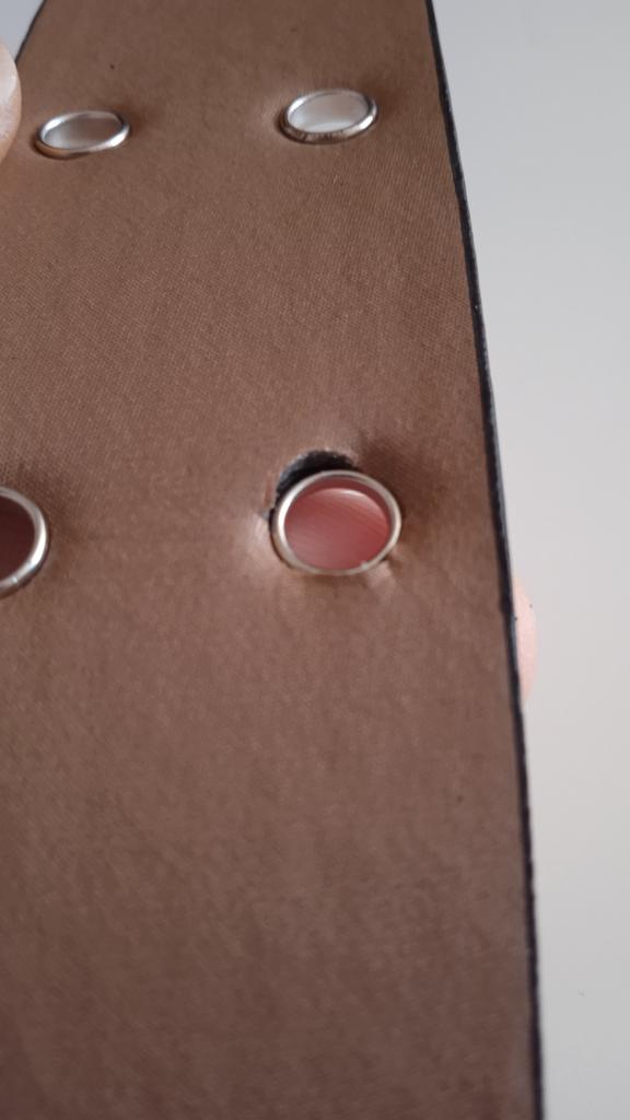 Доставка месяц и 4 дня. Сразу скажу, что пояс на троечку с минусом (5 звёзд поставила, чтоб далеко вниз не закинули). Есть запах, кожзам так себе, при сгибании появляются мелкие складки. Мне пришёл с небольшим браком (одна клёпка из множества имеющихся плохо прикреплена, скоро вывалится). Удобно, что много отверстий, значит на разные фигуры подойдёт. Сам пояс до металлического ремешка 99 см. Подойдёт на талию до 93 см. Это будут две крайние дырочки. По скольку мне пояс достался за 276 руб. претензий нет. Носить буду, пока не облезет. Дополняю: клëпка вылетела сразу, как одела ремень.