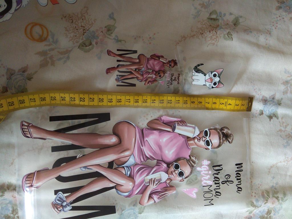 Получила я свою посылочку, очень ждала и вот...наклейка ,которая поменьше идёт совсем малюсенькая,на футболку ребенка ее даже нет смысла переносить,так как она уж очень крошечная,разве что на бодик для маленького ребенка и на женскую ХС-С размера.