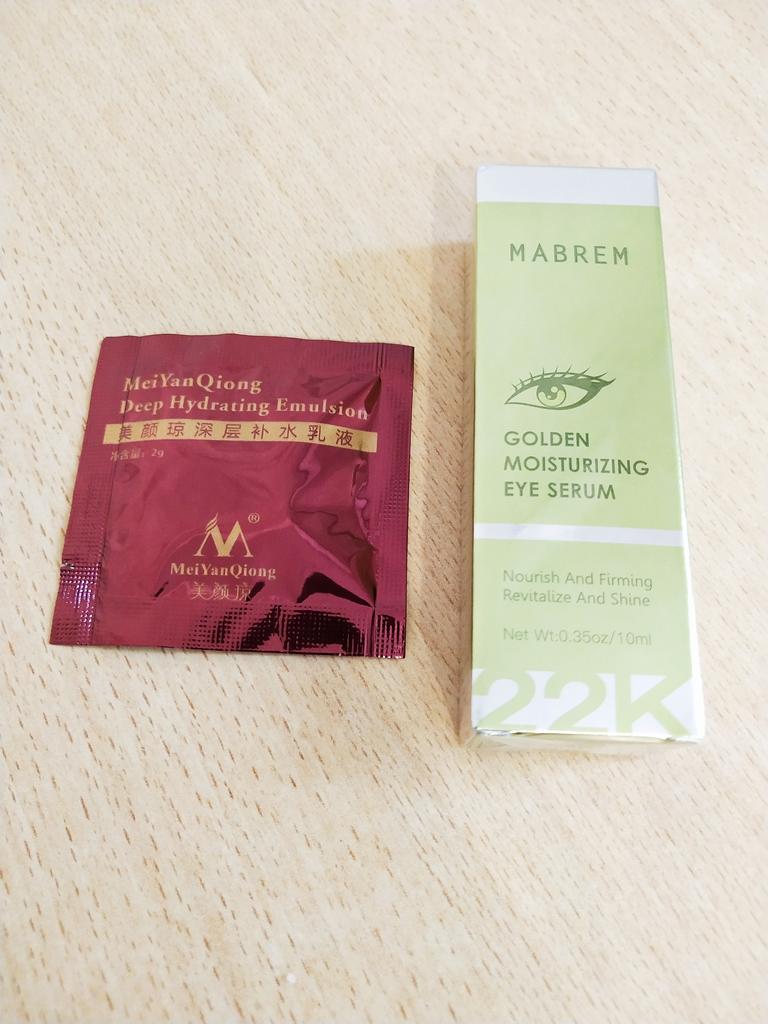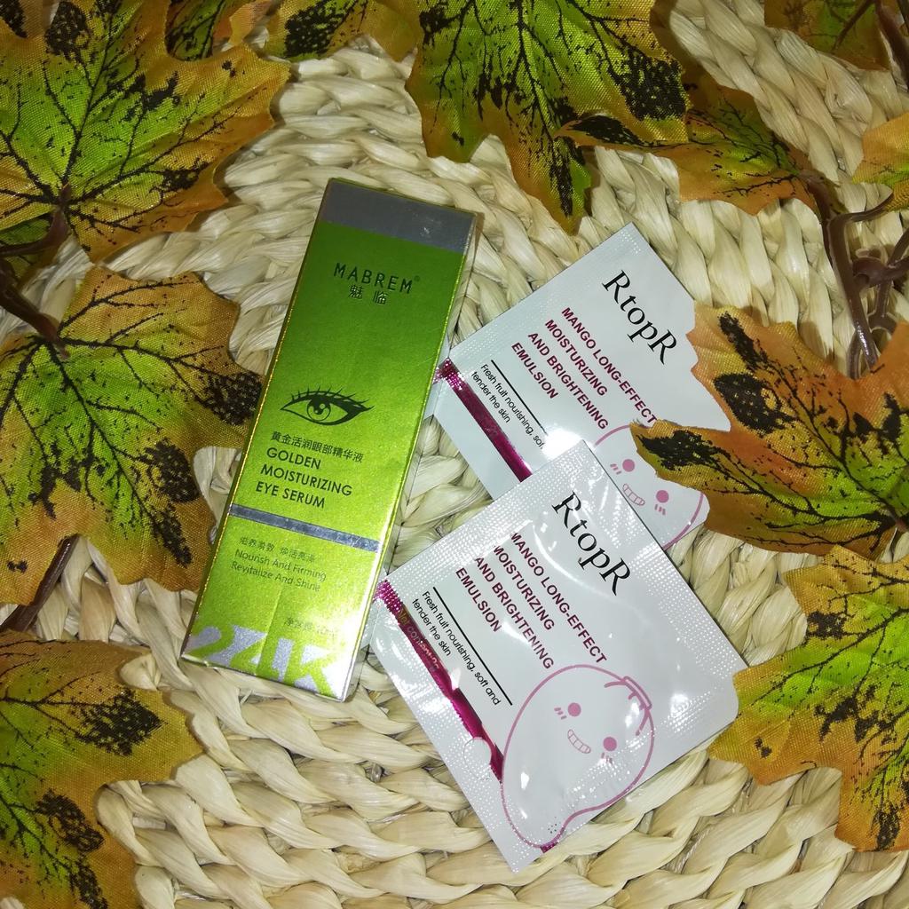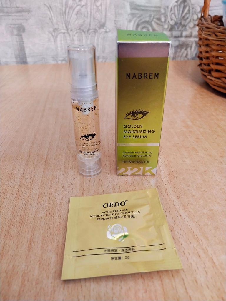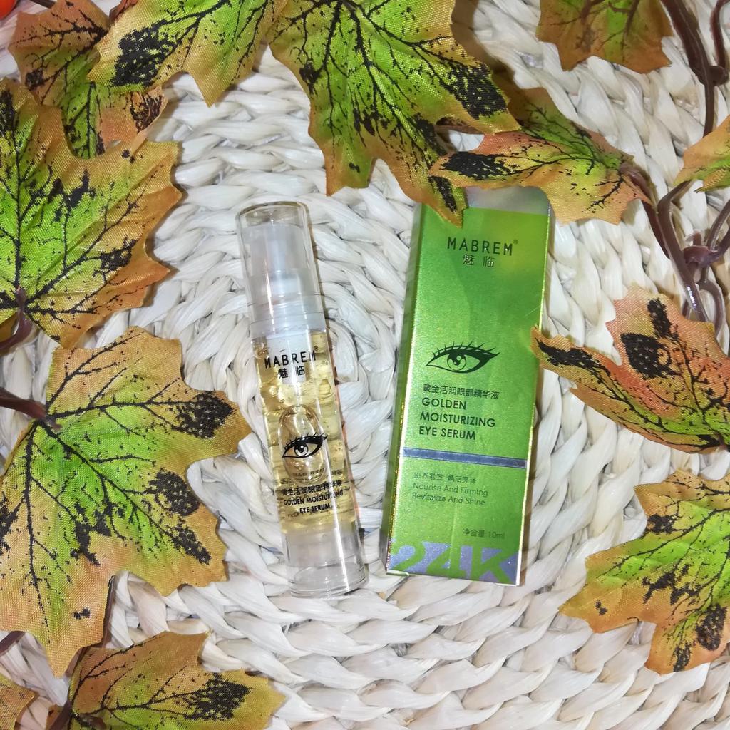 🌿👁 Увлажняющая сыворотка для кожи вокруг глаз от «MABREM» 👁🌿 Увлажняющая сыворотка для кожи вокруг глаз с золотом 24 К от известного бренда «MABREN» - средство для увлажнения и питания нежной кожи вокруг глаз, борьбы с отёчность, тёмными кругами под глазами и мимическими морщинками. 🌿 Сыворотка находится в коробочке, запаянной в слюду. На коробке информация на английском языке (сделала для вас фото-перевод) - состав, способ применения, особенности продукта, предосторожности, срок годности, штрих-код. 👁 Пластиковый флакон с помпой - дозатором, очень удобно - одного нажатия достаточно, чтобы получить нужное количество средства. Ёмкость 10 мл. 🌿 По консистенции сыворотка не жидкая, более густая и слегка вязкая. Легко распределяется, не оставляет липкости, достаточно быстро впитывается. Маленькие частички коллоидного золота, которые мы видим в сыворотке, быстро тают при нанесении на кожу. Запах лёгкий, практически не ощущается. 👁 В составе сыворотки золото (омолаживание), гиалуроновая кислота (увлажнение), экстракт из водорослей Chondrus Crispus, кофеин, бетаин (увлажнение), сорбиновая кислота (увлажнение), ксилит (смягчение). Но есть и синтетические вещества. 🌿 Способ применения - после очищения и тонизирования кожи лица, нанести необходимое количество средства на область вокруг глаз. Использовать два раза в день, утром и вечером. 👁 Сыворотка хорошо увлажняет и питает кожу, убирает мелкие морщинки вокруг глаз, вызванные сухостью кожи. Ну, а мои тёмные круги под глазами, как всегда на своём привычном месте))) Хотя я тоже понимаю, что лучшее средство от синевы под глазами - это обычный сон, которого мне катастрофически не хватает! 🌿 Аллергической реакции сыворотка не вызвала. 👁 Пришла отлично упакованная. Продавец положил маленький подарочек - два пробника эмульсии. Неплохая сыворотка, хорошо справляющаяся с увлажнением и питанием кожи вокруг глаз. Для этих целей рекомендовать могу, но на большее я бы не рассчитывала. Доставка до Омска в течении 24 дней, трек отслеживался до почтового отделения.