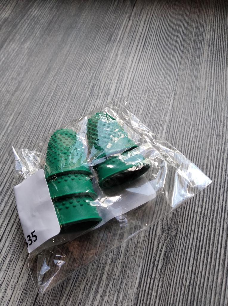 Получила посылку - резиновые напёрстки в количестве 5шт. Все одного размера. Описанию соответствуют. В работе ещё не пробовала, но, думаю, что всё будет нормально. Спасибо продавцу и JOOM. Рекомендую.