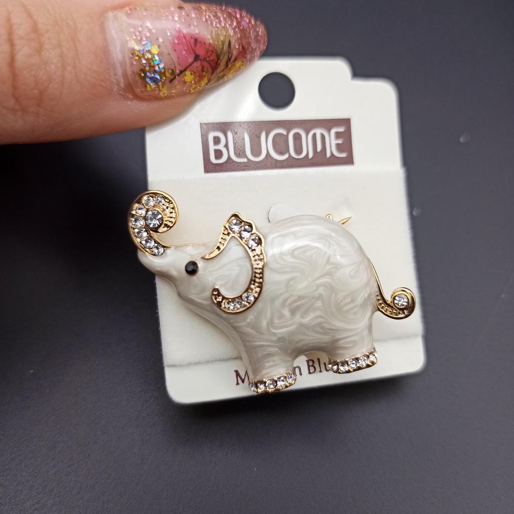 BLUCOM Элегантная цинковая брошка с эмалью в виде слона с горным хрусталем