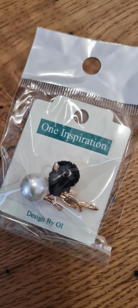 Милая птичка. За счёт жемчужной бусины выглядит объемнее, ярче. На тонкой ткани будет перевешивать, тянет вниз вес, на плотной можно сдрапировать и более ровно сидит. Пожалуй в этом небольшой нюанс. Насколько качественное покрытие покажет время. Спасибо. 🍀🙏