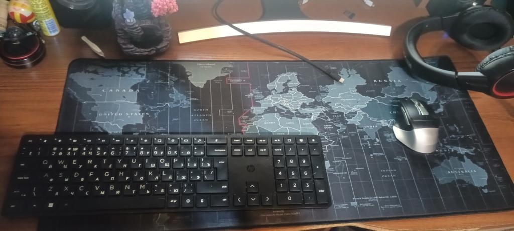 Неплохой коврик. По столу не скользит. Уложен/свернут качественно. Некоторые страны слишком черные, не видно.)))