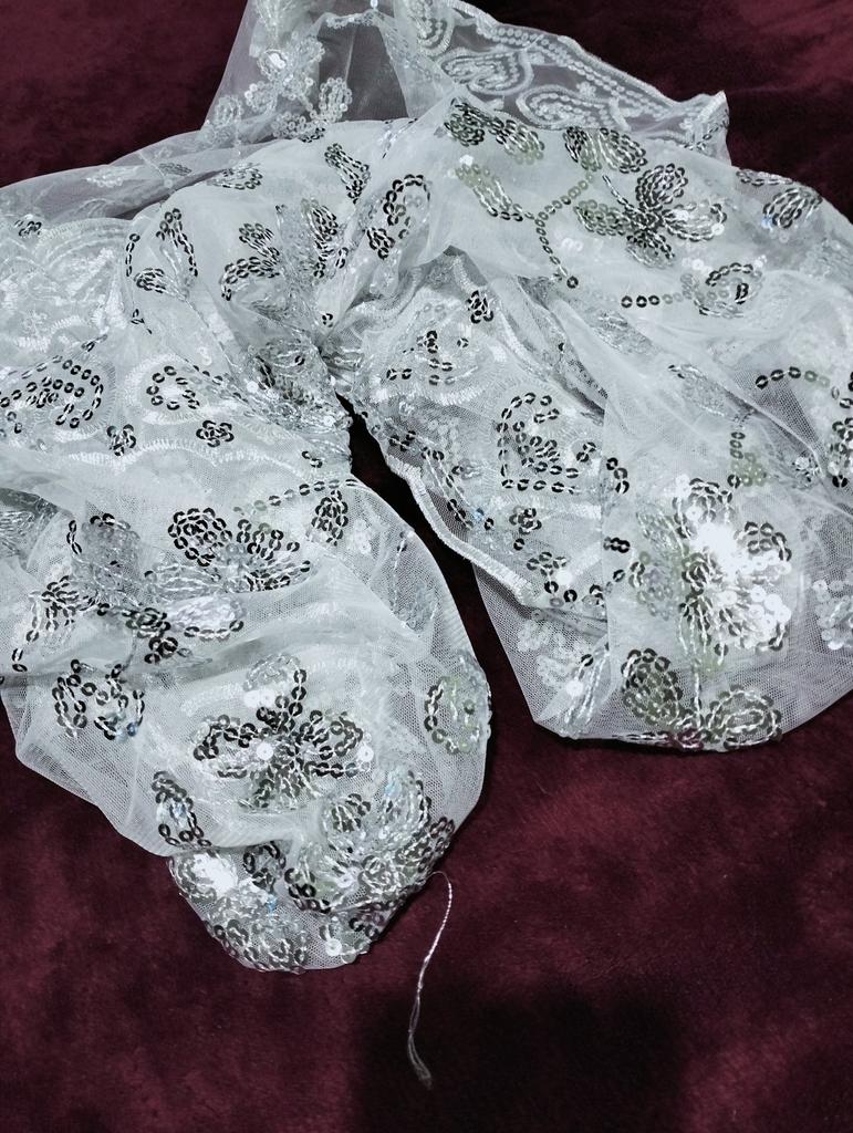 На палантине с пайетками много торчащих ниток и обрезать страшно,вдруг пайетки посыпятся,а так очень красивый палантин.