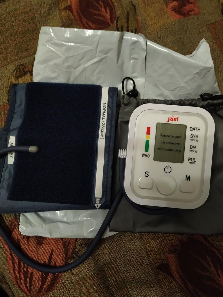 Получила по почте тонометр. 1. Тонометр был упакован в мешочек и в коробке. 2. Купила пальчиковые батарейки, может работать и от сети , только надо подходящий зарядное от мобилки. 3. Чем ещё хорошо, что сам набирает воздух и сбрасывает автоматически. 4. Насколько точно показывает судите сами. 5. Все что есть , тонометр, рукав складывается в мешочек. Пока работает и хорошо , а как дальше надеемся на лучшее. Я и родные довольные. Каждый выбирает сам. Благодарю.Joom.