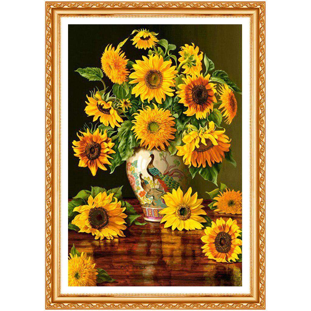 5D Алмазная вышивка Желтый цветок Подсолнух Ваза для цветов Алмазная картина Вышивка крестом Круглый декор
