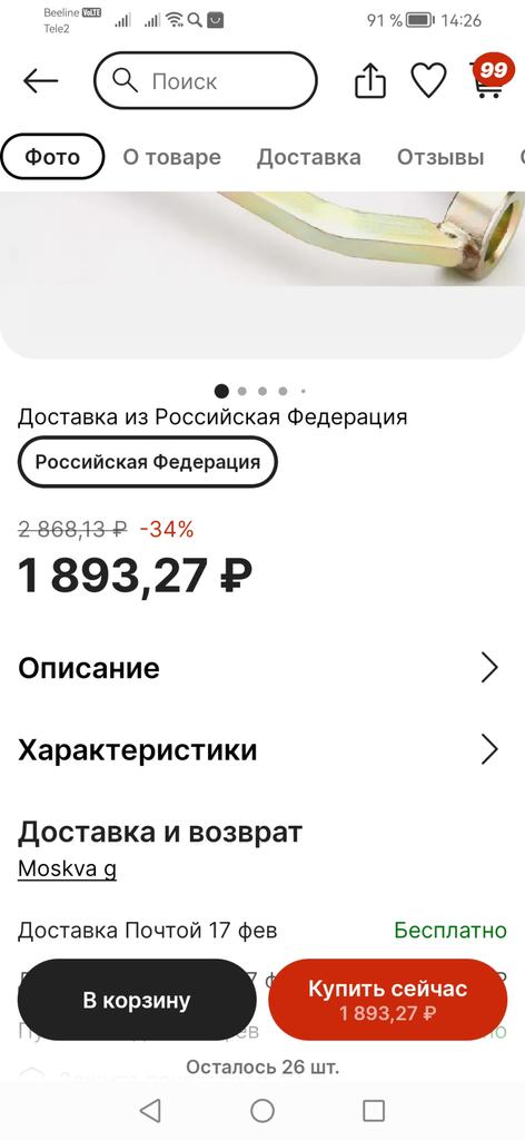Как бы всё хорошо. Качество отличное, металл толстый не погнется размер универсальный, от мало до велико, доставка быстрая, меньше двух недель. Но.... С ценой перебор. На работе похвастался что пришло быстро и цена по скидке 2083 а была 2569, а товарищь защел на Али и показал цену. Я сам полез посмотреть и точно, доставка из России товар тот же, цена без всяких скидок 1893. Это вся информация на 13 февраля.