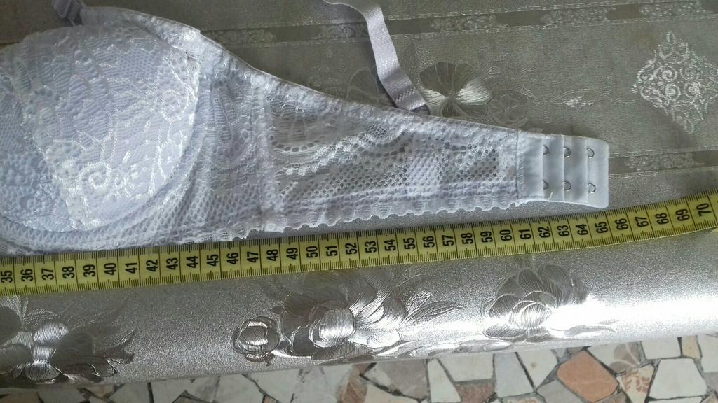 Всем пламенный привет! Бюстгалтер белый кружевной . Размер75С подошел на ог 93см ,но под грудью 80см впритык на последний крючёк. Нужно было брать D. Или на размер больше. Измерила длинну 66см . Лямки широкие не длинные, не остегиваются. Кружева мягкие,приятные на ощуп . Для тела, нет раздражения. 📌☝Цвет подкладок лифа не белый ,а голубоватого оттенка ,а коружева белые. И это видно когда одеваешь блузу белого цвета ,бюстгалтер отличается даёт оттенок светло голубой. Мне не мешает,а вам на ЗАМЕТКУ. Есть не большие не дочёты ,это как всегда НИТКИ с внутринней стороны . 📌 Логистика очень долга доставляет ,заказала в маи а пришол в июле ,почти в первые же дни начали вылазить из швов пластинки и сильно врезаются в тело.