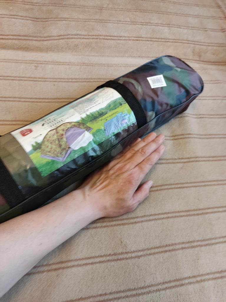 Получил палатку. Материал тонкий, но вполне достаточно для укрытия от непогоды - лёгкого ветра и от дождя спасёт. Нашёл два плохо прошитых места. Но это не катастрофа - легко устранимо собственными силами. Компактна и лёгкая.
