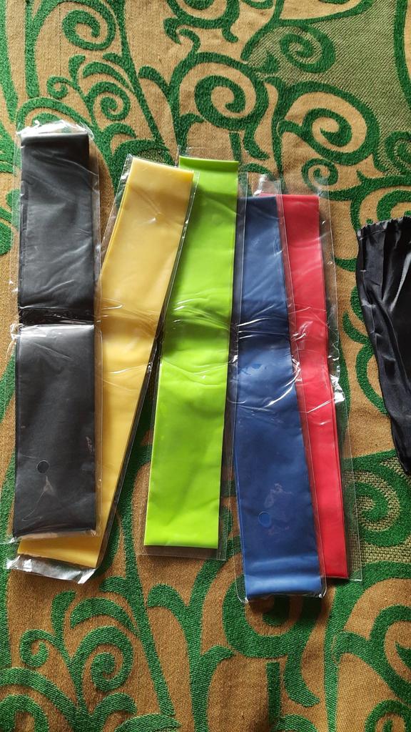 Хорошие резинки, каждая в отдельной упаковке и все вместе в чёрном мешочке на завязках. Жаль, что не подписаны, но думаю, через пару тренировок запомнится, какая более тугая и помягче. Дополение: внутренней длины резинки не хватает. Для некоторых упражнений приходится исхищряться и соединять пару резинок между собой. Был бы отличный набор если бы в нем были резинки не только разной плотности-эластичности, но и длины.