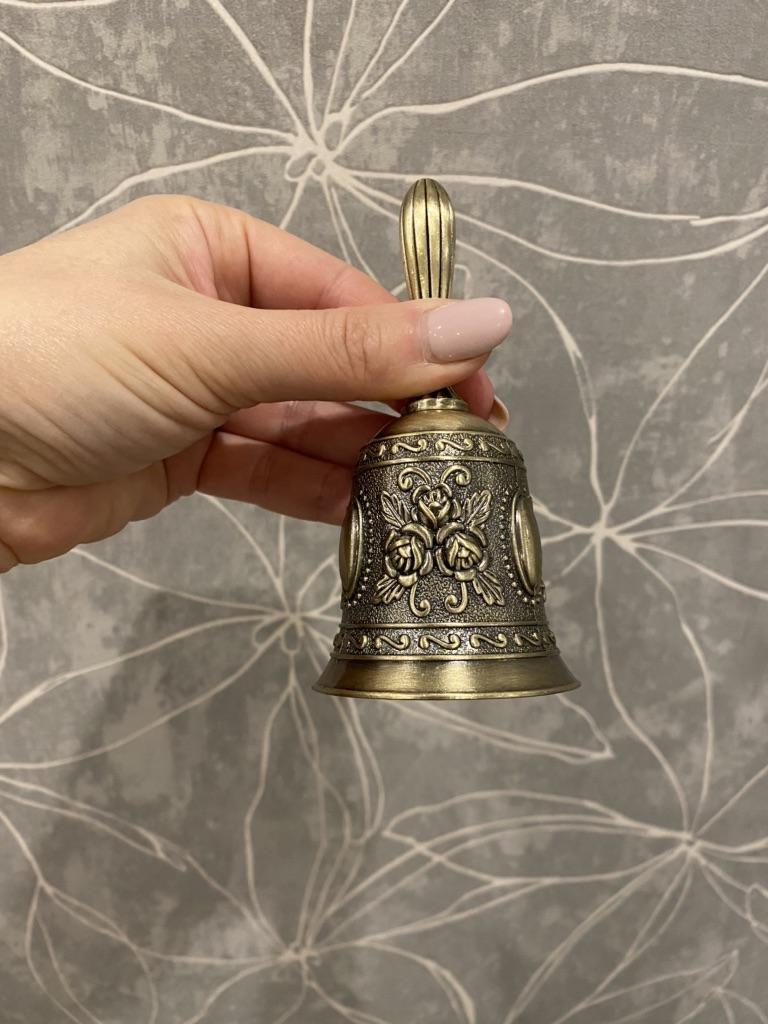 На вид красивый, а голоса нет. Тихий. В десяти метрах неслышно. Колокольчик покрыт толстым слоем лака аэто является глушителем звука. Ободрал лак внутри- стало звонче. Смою сверху-поделюсь ощущениями. Дополняю, после смывки лака стало звонить громче.