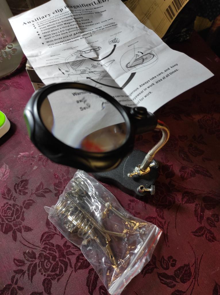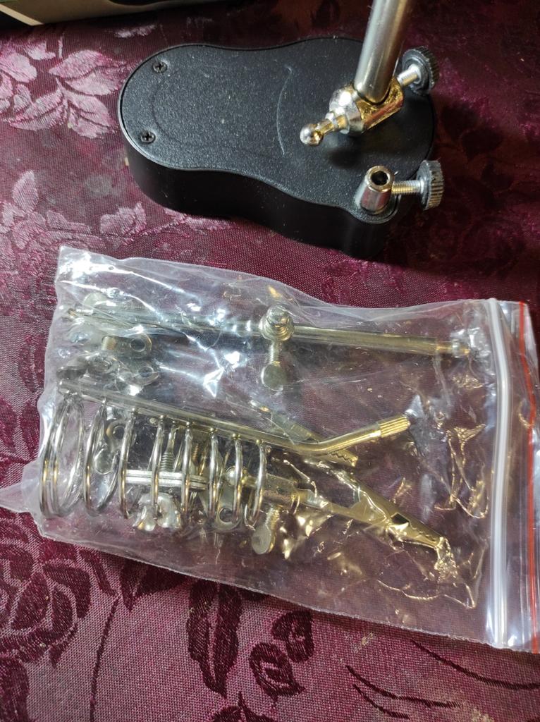 В Одессу доставка ровно месяц! Заказал 11 января, на почте 11 февраля. Приехала подставка в разобранном состоянии, в картонной коробке слегка помятой, но все целое. Собрал, подтянул. Не пробовал в работе, но паяльник держит хорошо, лупа сильная. Надо купить три пальчиковых батарейки, чтобы работала подсветка (в комплекте нет). Рекомендую за такие деньги! Думаю свою функцию будет выполнять. Смотрите фото и видео! Как это все собрать и что получилось в итоге.-).