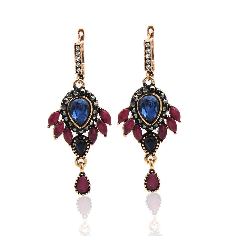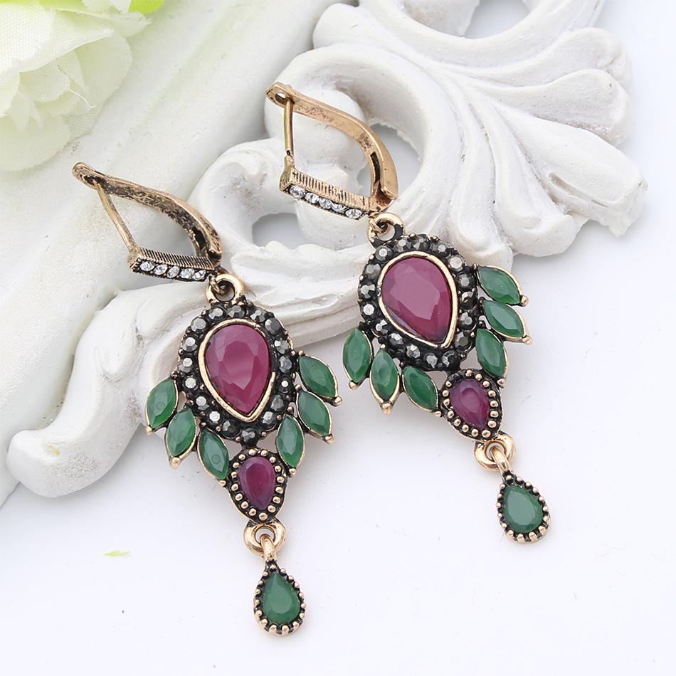 Индийские серьги с каплями воды из смолы и цветов, полые фейерверки, длинные серьги-крючки, винтажные ювелирные изделия, античное золото, цвет Аравии, танец