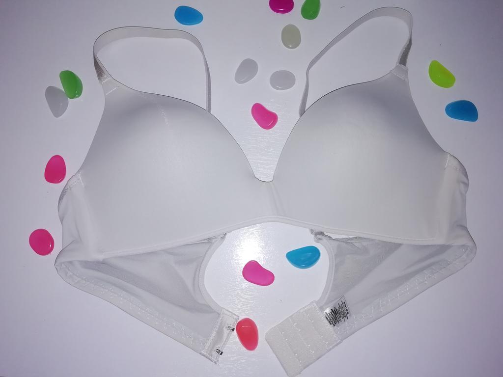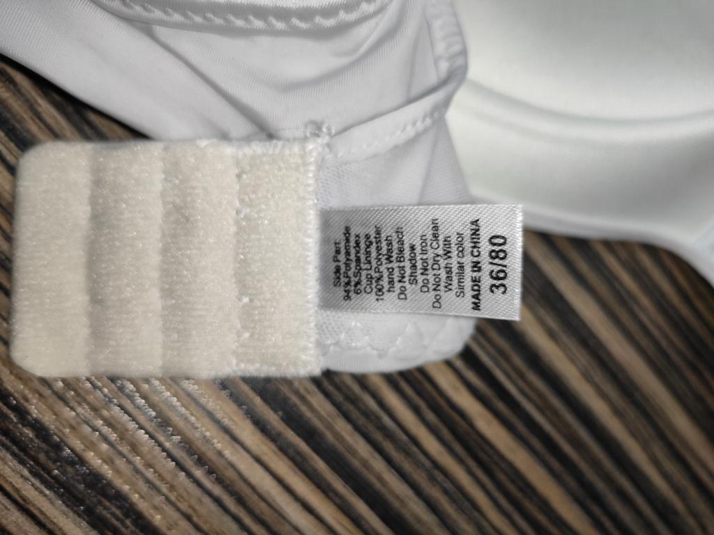 * Заказ был оформлен 09.06. Прибыло в отделение Укрпочты 05.07. Заказ отслеживался. Прибыло в сборной посылке из 8 товаров, что удобно, не нужно бегать на почту за каждой вещью. Каждый товар был в своей индивидуальной упаковке и в огромном пакете. * Сам бюстгалтер не белого цвета. На фото цвет не передаётся. Чашки грязно-голубые, лента сзади серо-белая... Странное сочетание, конечно. Но не под белые вещи подойдёт. * Размер соответствует таблице. * Удобный, мягкий, без косточек. Немного с push up. *. Состав: 100% синтетика (полиэстер).